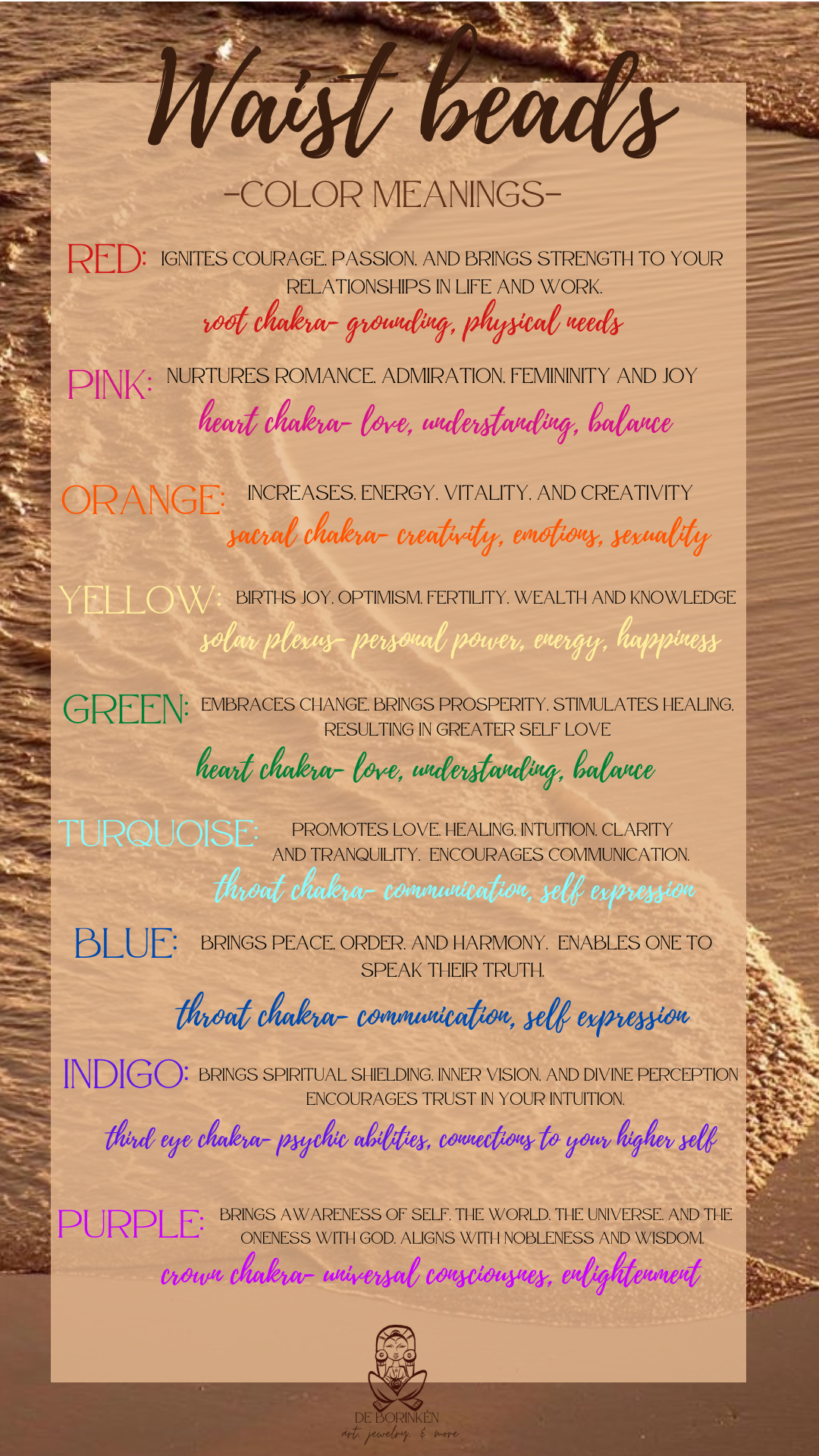 PS. For anyone looking to learn more about the healing of waist beads, energy centers aka chakras, color theory, or anything I’ve mentioned around my page, please feel free to shoot me a message! I truly would love to share more of my knowledge :) (Contact form is on the bottom of the home page)